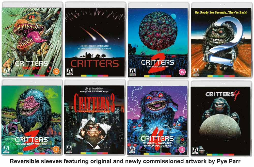 Critters přistáli! Masožraví tvorové z vesmíru! Zuřiví škůdci s velmi ostrými zuby! Oblíbená sci-fi/komediálně-hororová série se poprvé objevuje na Blu-ray ve Velké Británii v této speciální edici od Arrow Video.